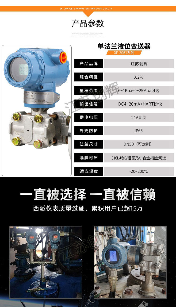 2、316膜片、HC、鈦膜片多種選擇,世界上***采用H合金護套的傳感器(**技術),幫助單法蘭液位變送器實現(xiàn)了優(yōu)良的冷、熱穩(wěn)定性